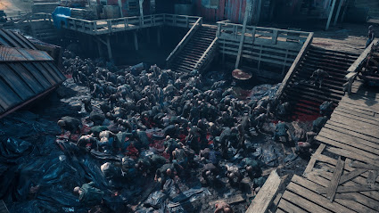 All of this initially feels same old same old, and Days Gone's biggest sin is not doing enough to make its opening hours distinctive. Dying Light overcame open world fatigue and map icon-hoovering tedium with fast-paced parkour and first-person zombie-slaying action, whilst most games of this type show their hands early, by giving you a steadily escalating number of options and skills in the opening hours of a game (although often at the cost of later hours of the game turning into repetitive grinds). However, by drop-feeding new ideas, activities, areas and mission types consistently across its length, Days Gone maintains greater interest in the long run. ~45 hours into the game a completely new, major activity is dropped into your lap providing hours' worth of entertainment. The game does a surprising job of staying fresh and each set of new missions and new characters is more compelling than the last.